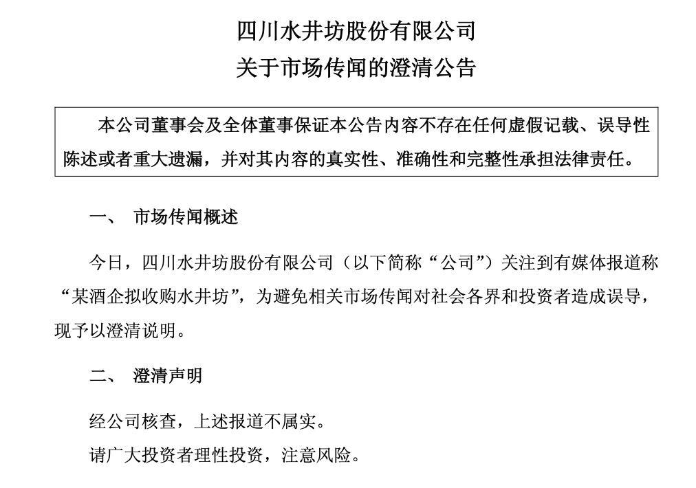 近日,水井坊(600779.SH)股价异动涨停,市场盛传川酒“六朵金花”之一的剑南春将对其进行收购。当晚,水井坊紧急发布澄清公告,称相关传闻不实,不存在任何拟收购或被收购计划。